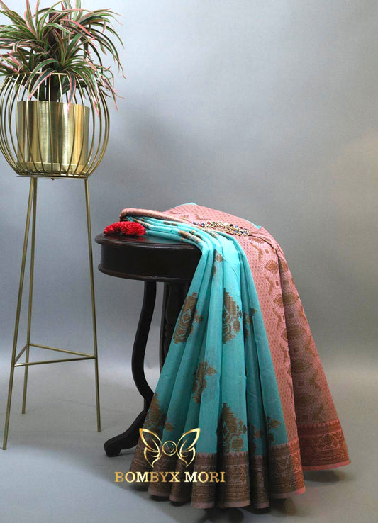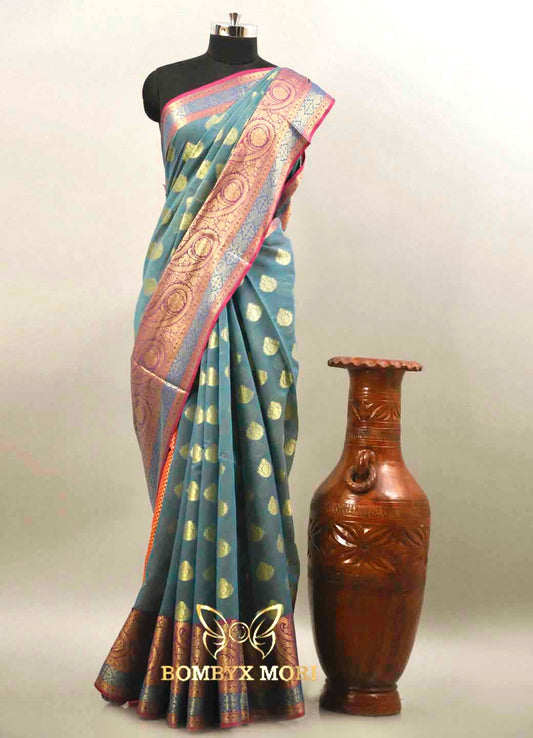Sapphire Blue and Golden Bombyx Banarasi saree