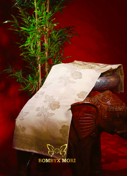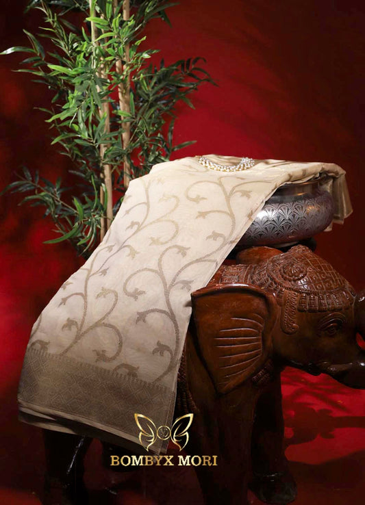 Ivory and Golden Kashi Banarasi saree