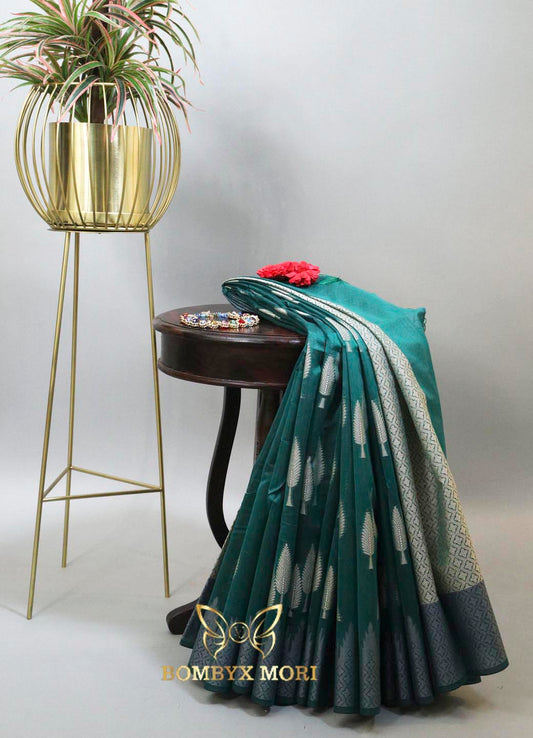 Pine Green Kashi Banarasi Saree