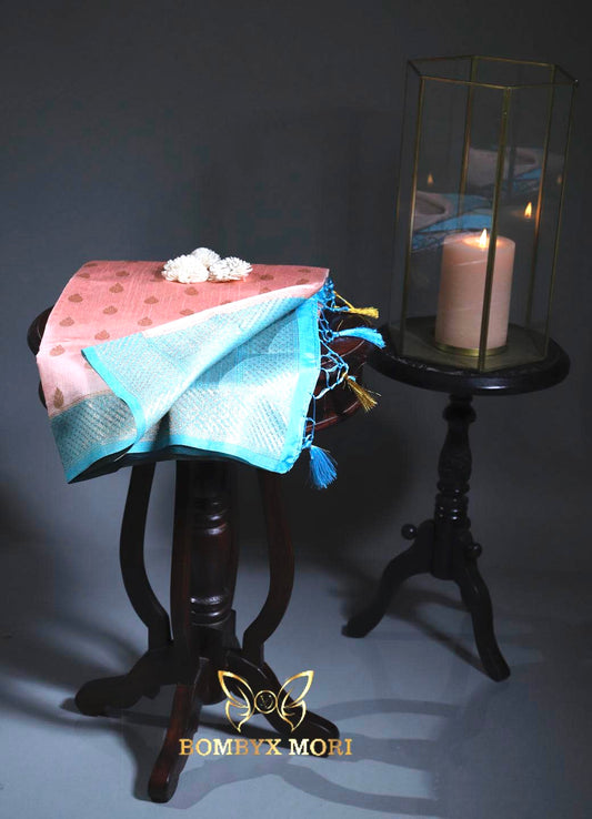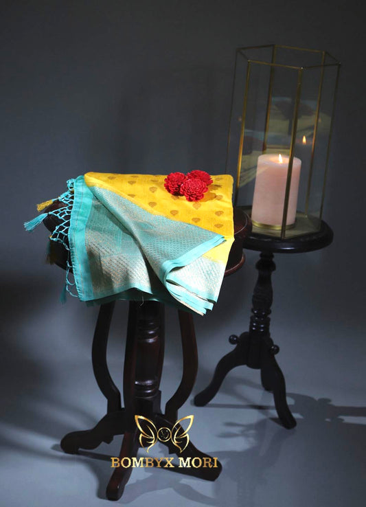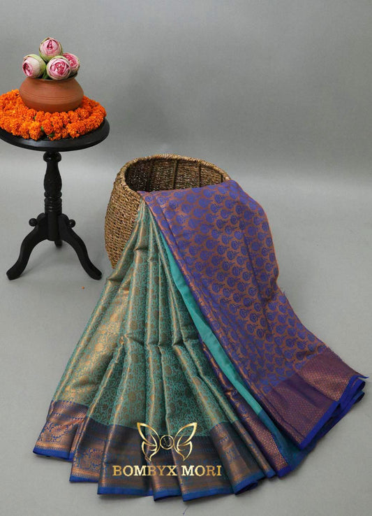 Pistachio Green and Neon Blue Bombyx Banarasi saree