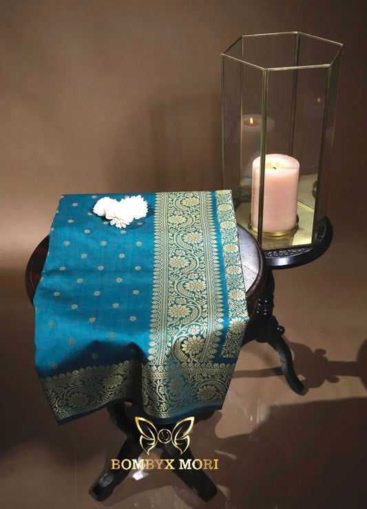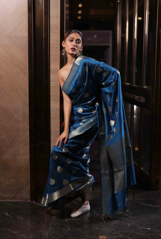 Sapphire Blue and Golden Bombyx Banarasi saree