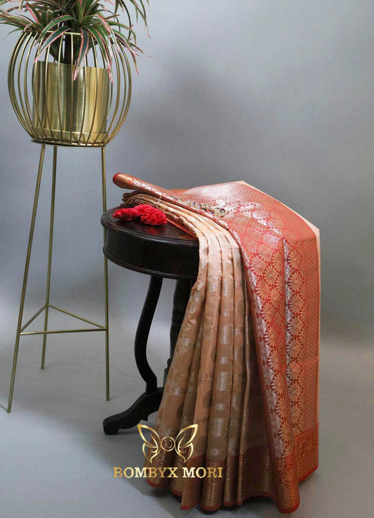 Khinkhwab Cream and Golden Bombyx Banarasi saree