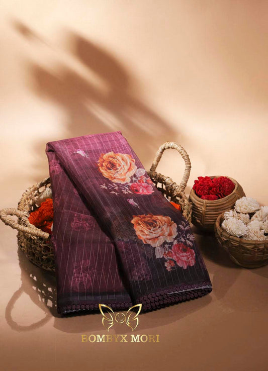 Exquisite Wine Organza Saree