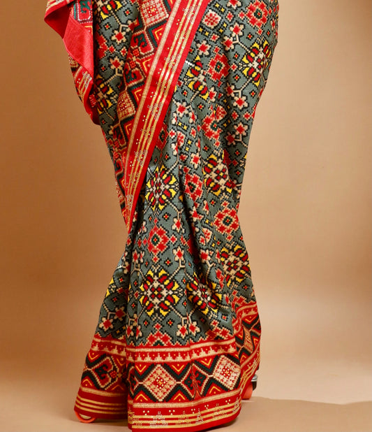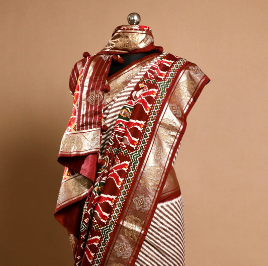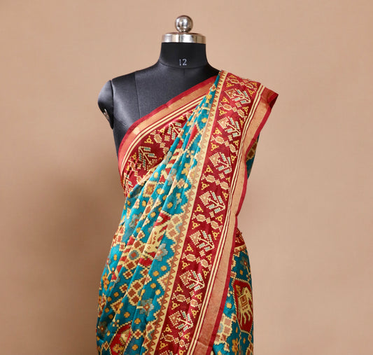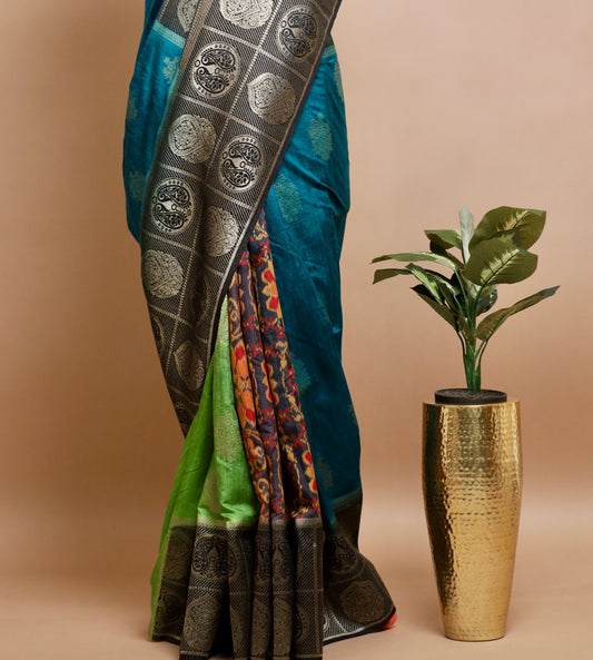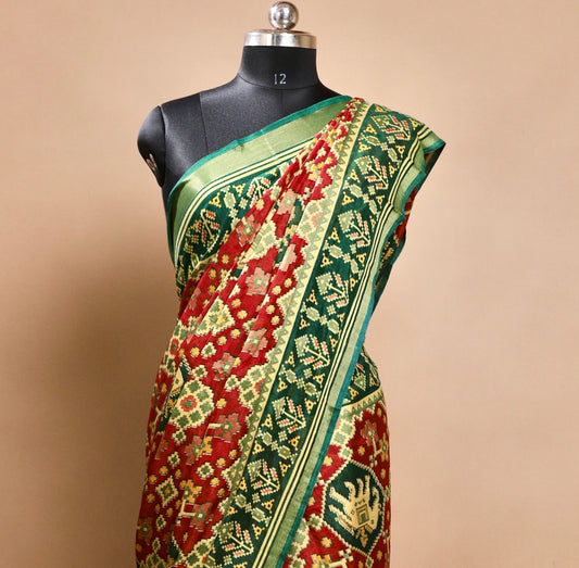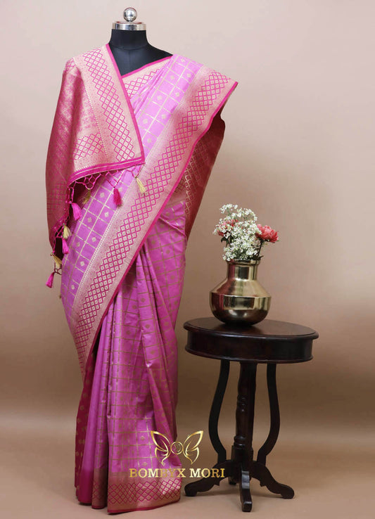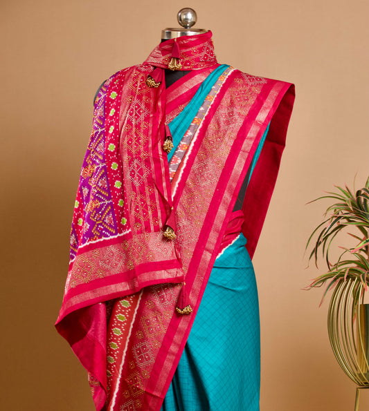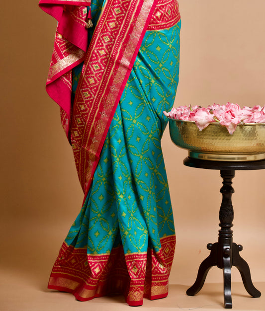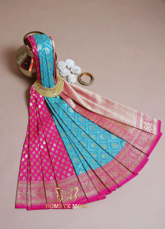 Sea Green And Pink Gharchola Banarasi Silk Saree