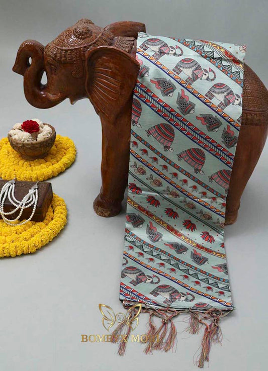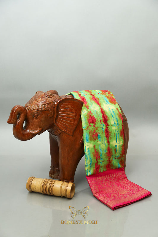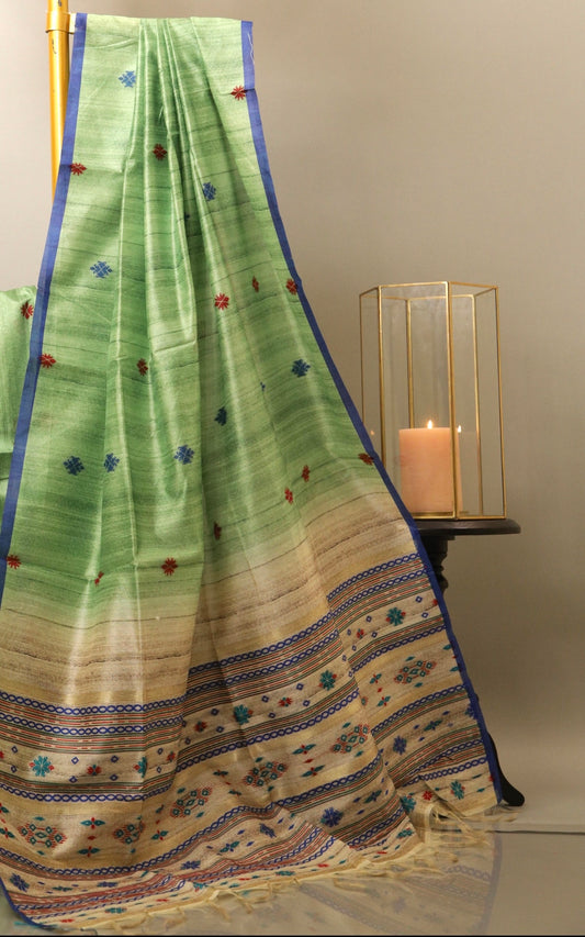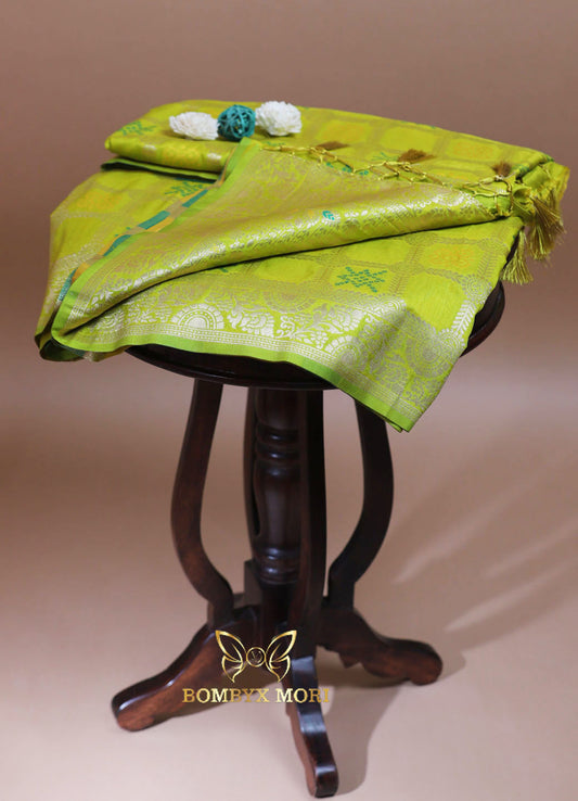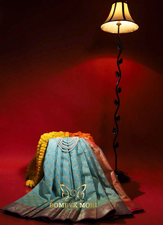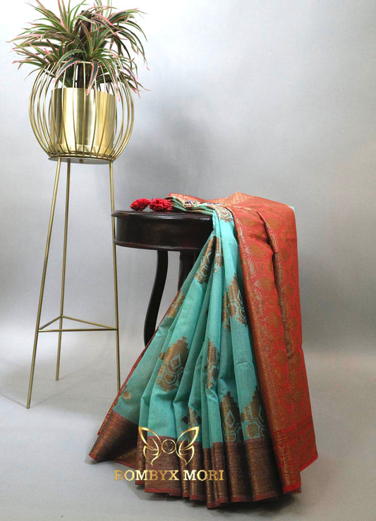 Sea green and midnight blue kanjeevaram brocade silk saree