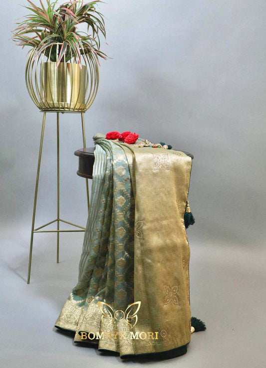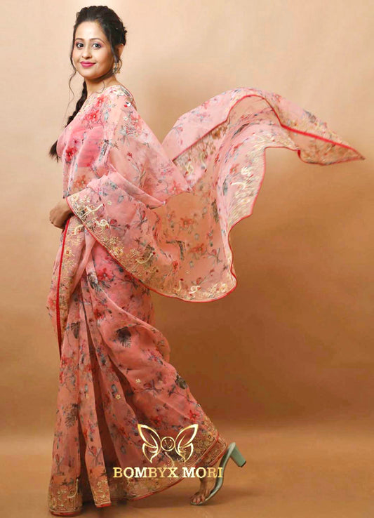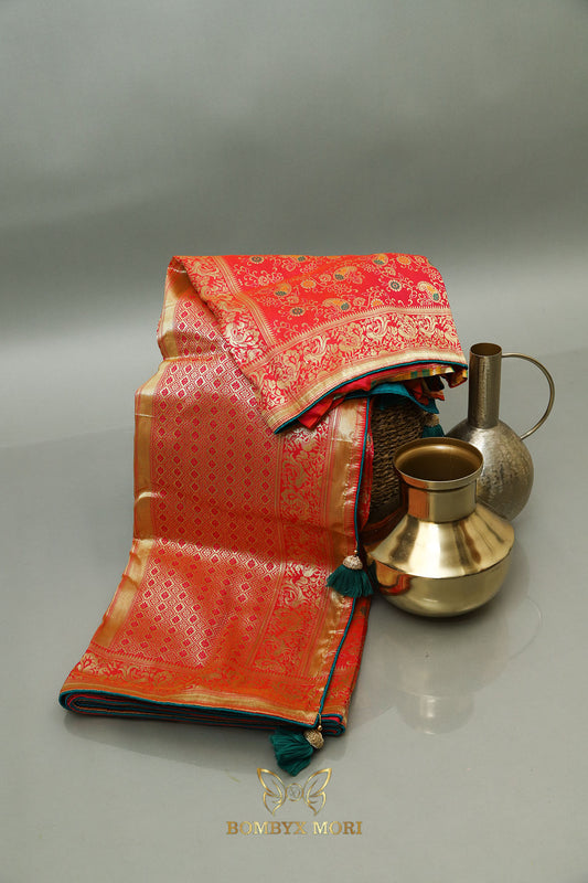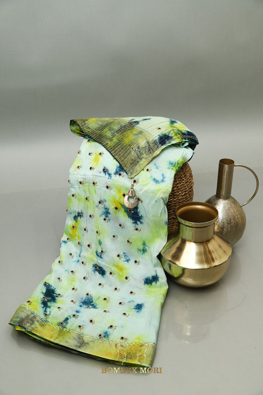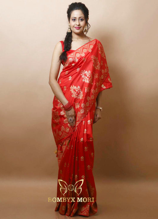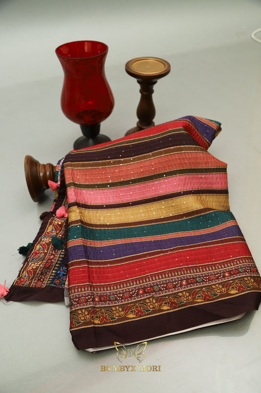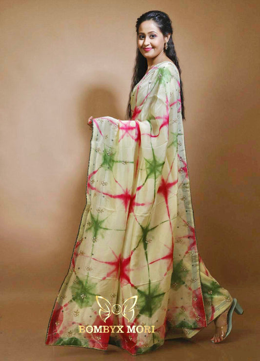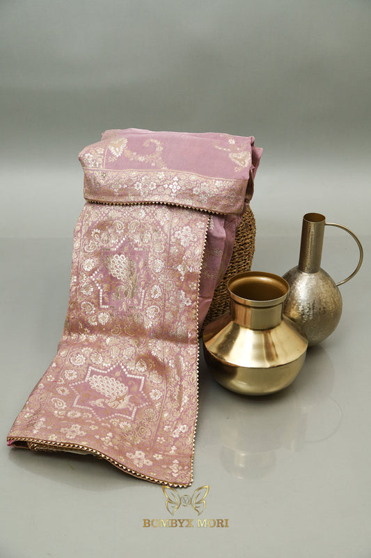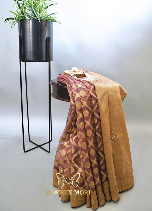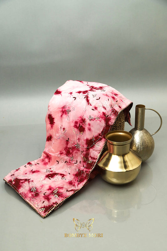 Rose Gold and Maroon Tie-Dye Rajwada saree