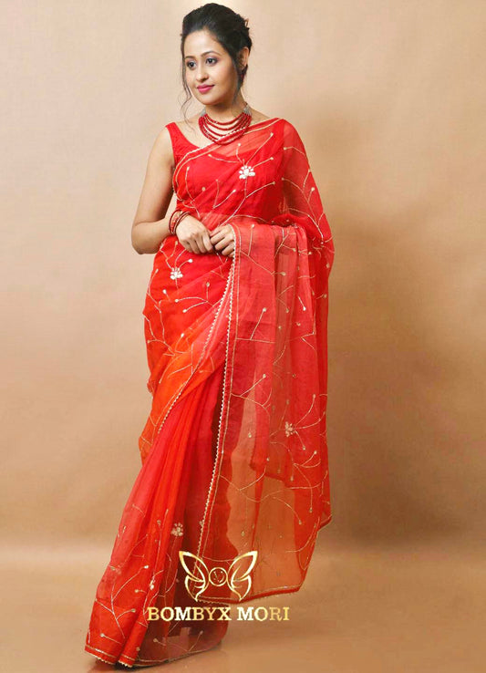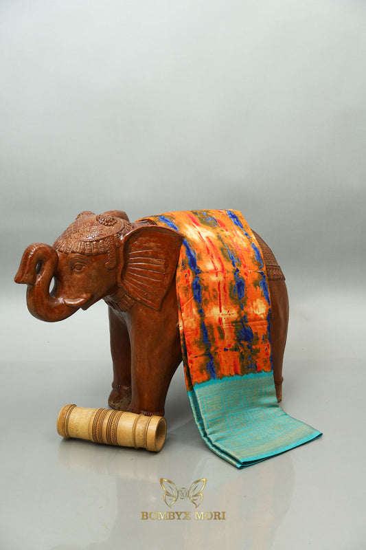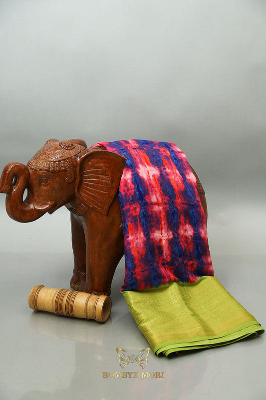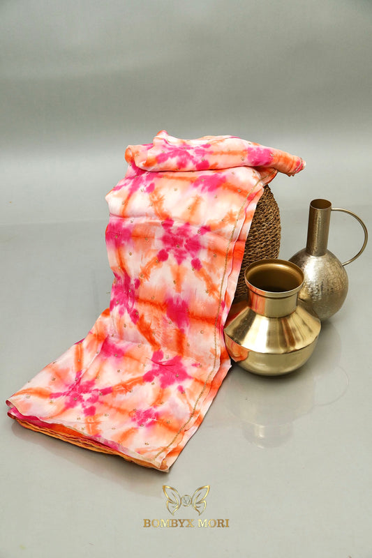 Vibrant Pink and Orange Tie-Dye Rajwada saree