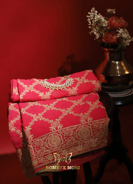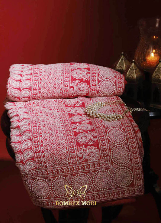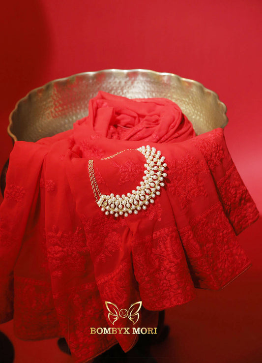 Naaz Red chikankari Saree