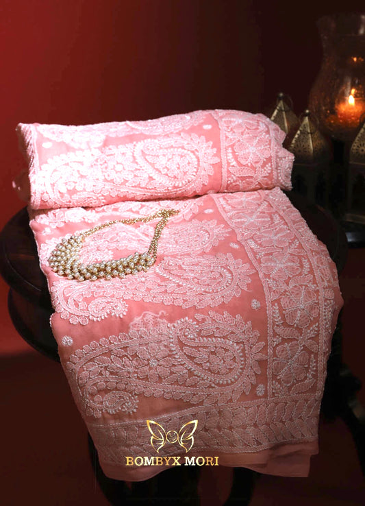 Peach Shaan e Lucknow Saree