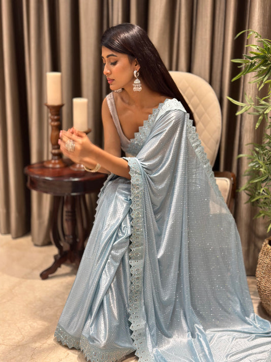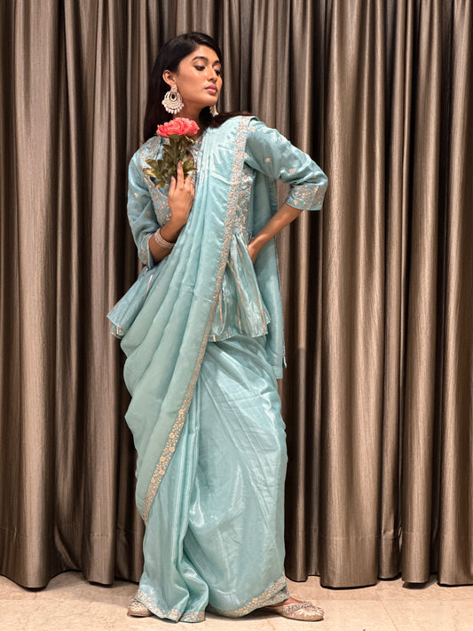 Sea green and midnight blue kanjeevaram brocade silk saree