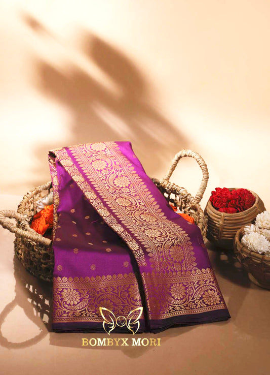 Midnight blue and magenta pink kanjeevaram brocade silk saree